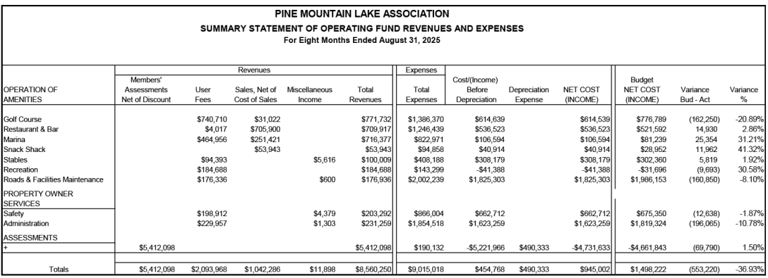 All in, operational revenue, the money used to supplement our dues needed to fund PMLA operations, is running over $450K higher than this point last year. That’s the equivalent to a 5% increase in our assessment (aka “HOA dues) for the year. A large percentage of that sales volume are contributions visitors and guests make while enjoying this wonderful community.