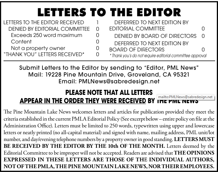 It’s budget time of year. I want to caution the board against the incessant increasing of property dues. The more dues increase, the greater incentive for vacant lot owners to just relinquish their lots back to the association.